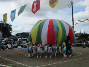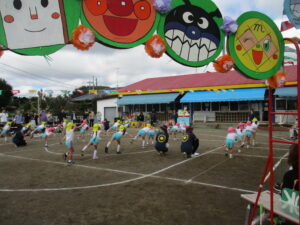 2025/12/12 秋の運動会 秋の空の下、楽しみにしていた運動会が園庭で行われました。お家の方がたくさん観覧に来て頂き、子ども達の笑顔がたくさんみられ、いつも以上に張り切って頑張る姿がみられました。